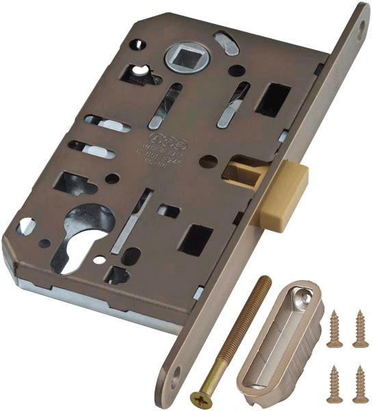 Замок межкомнатный под цилиндр. Тех упаковка. Защелка MEDIANA POLARIS с магнитным язычком отличается необычайной бесшумностью, при нажатии на дверную ручку происходит разрыв между двумя магнитами и защелка втягивается в корпус замка. Модель разработана инженерами компании AGB и объединяет в себе надежность, качество, точность механических соединений и инновации. Все замки серии Polaris имеют один размер и взаимозаменяемы между собой.
