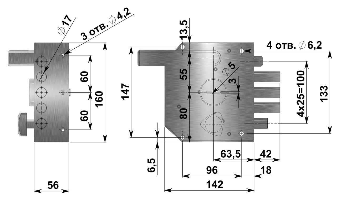 Замок накладной с трехпалым ригелем, фалевой защелкой и внутренней задвижкой. Имеет 8и-сувальдный блокирующий механизм сейфового типа.Замок сертифицирован 3 классом по ГОСТ 5089-2011, сохраняет работоспособность после попадания в скважину посторонних предметов.Запирание двери обеспечивает повышенную сопротивляемость к взлому и высокую степень защиты.Выпускается правого и левого исполнения. Толщина корпуса замка 24 мм.Запирание поворотом ключа обеспечивает ригель, имеющий три пальца диаметром 17 мм с вылетом 42 мм. Защелка обеспечивает фиксацию двери и приводится в действие ручкой. Внутренняя задвижка работает от треугольной ручки.В модификации Эталон НРЗ-01 — сертифицирован высшим 4 классом по ГОСТ 5089-2011.