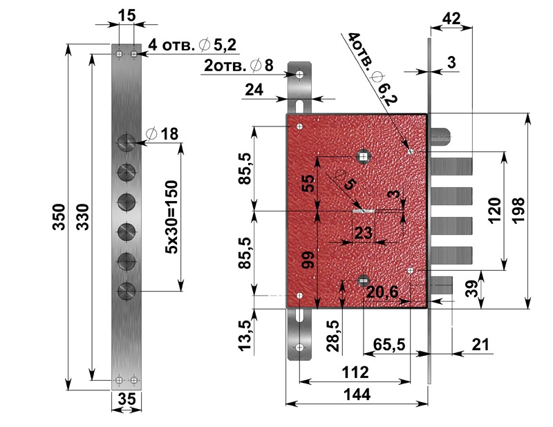 Замок врезной с четырехпалым ригелем, фалевой защелкой и внутренней задвижкой. Имеет 8и-сувальдный блокирующий механизм сейфового типа. Замок сертифицирован 3 классом по ГОСТ 5089-2011, сохраняет работоспособность после попадания в скважину посторонних предметов. Запирание двери обеспечивает повышенную сопротивляемость к взлому и высокую степень защиты. Выпускается правого и левого исполнения. Толщина корпуса замка 26 мм. Основной засов, состоящий из четырех пальцев диаметром 18мм, имеет вылет 40 мм и приводится в действие с помощью ключа. Защелка обеспечивает фиксацию двери и приводится в действие ручкой. Внутренняя задвижка работает от треугольной ручки.