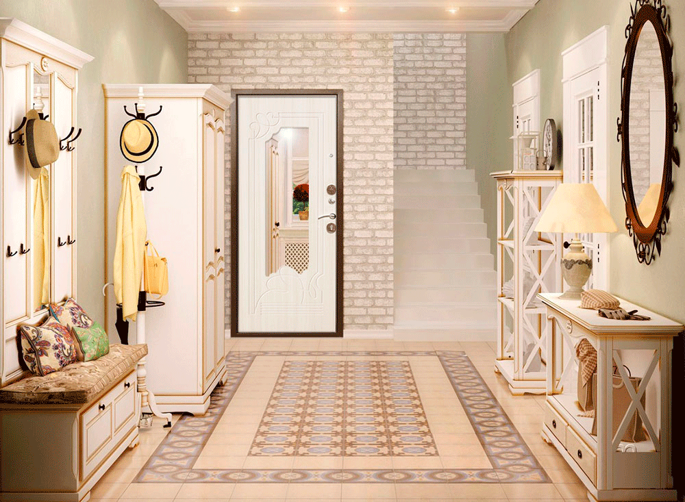 6 см Ампир Входная дверь с зеркалом Белый ясень