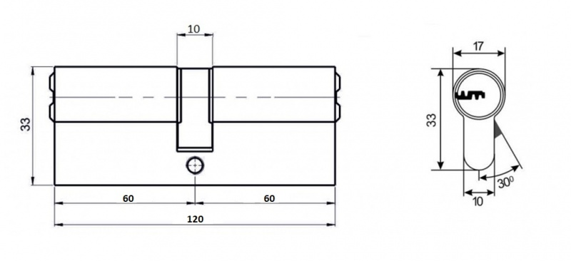 Цилиндровый механизм VETTORE ZN_NI предназначен для установки в корпуса врезных цилиндровых замков для всех типов дверей.