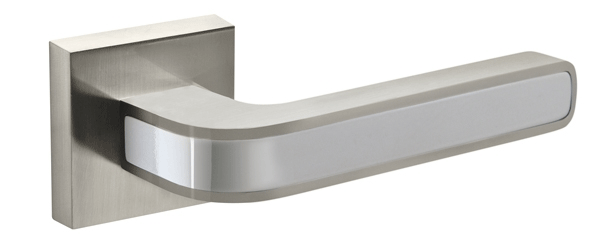 Дверная ручка на раздельном основании Fuaro NEO DM на квадратном основании подходит для установки на внутренние входные и межкомнатные двери.