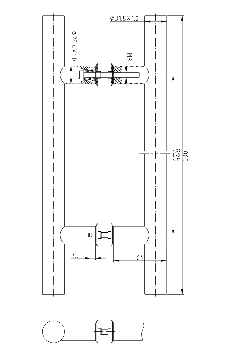 Ручки-скобы для дверей. Материал: нержавеющая сталь.