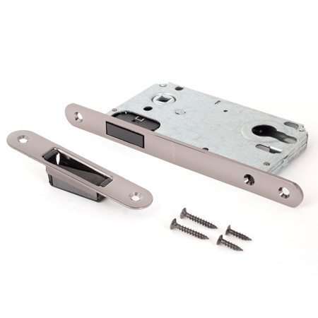 Бесшумные магнитные замки и защелки, со смещённым ригелем, для межкомнатных дверей. Размеры корпуса идеальны для установки с дверными ручками на розетке в комплекте с накладкой на цилиндр или сантехническим фиксатором. Магнитный ригель обеспечивает действительно бесшумное закрывание двери. Не требуется перестановка ригеля для левой/правой двери. Угол нажатия ручки: 30 градусов. Стойкое покрытие подходит для использования во влажных помещениях (ванная комната). Межосевое расстояние: 85 мм (евроцилиндр) 250 000 циклов безотказной работы. Соответствие ГОСТу подтверждено сертификатом. Лучший выбор для тех, кому важна тишина.