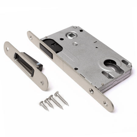 Бесшумные магнитные замки и защелки, со смещённым ригелем, для межкомнатных дверей. Размеры корпуса идеальны для установки с дверными ручками на розетке в комплекте с накладкой на цилиндр или сантехническим фиксатором. Магнитный ригель обеспечивает действительно бесшумное закрывание двери. Не требуется перестановка ригеля для левой/правой двери. Угол нажатия ручки: 30 градусов. Стойкое покрытие подходит для использования во влажных помещениях (ванная комната). Межосевое расстояние: 85 мм (евроцилиндр) 250 000 циклов безотказной работы. Соответствие ГОСТу подтверждено сертификатом. Лучший выбор для тех, кому важна тишина.