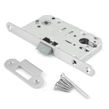 Малошумные замки с пластиковым язычком, для межкомнатных дверей. Размеры корпуса идеальны для установки с дверными ручками на розетке в комплекте с накладкой на цилиндр или сантехническим фиксатором. Пластиковый язычок снижает шум при закрывании двери. Перестановка язычка для левых/правых дверей занимает всего 3 секунды и не требует каких-либо инструментов. Угол нажатия ручки: 30 градусов. Стойкое покрытие подходит для использования во влажных помещениях (ванная комната). Межосевое расстояние: 85 мм (евроцилиндр) / 90 мм (фиксатор WC). 500 000 циклов безотказной работы. Соответствие ГОСТу подтверждено сертификатом. Бюджетный выбор для тех, кому важна тишина.