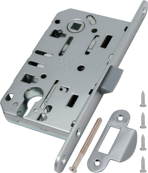 Замок межкомнатный под цилиндр с пластиковым язычком серии MEDIANA EVOLUTION отличается бесшумностью при закрывании.  Защелка разработанна инженерами компании AGB и объединяет в себе надежность, качество используемых материалов,  точность механических соединений и инновации. Все замки серии Evolution имеют один размер и взаимозаменяемы между собой.