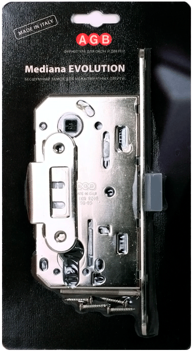Замок межкомнатный под цилиндр с пластиковым язычком серии MEDIANA EVOLUTION отличается бесшумностью при закрывании. Защелка разработанна инженерами компании AGB и объединяет в себе надежность, качество используемых материалов, точность механических соединений и инновации. Все замки серии Evolution имеют один размер и взаимозаменяемы между собой.