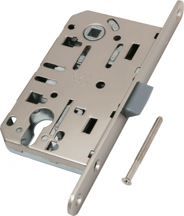 Замок межкомнатный под цилиндр с пластиковым язычком серии MEDIANA EVOLUTION отличается бесшумностью при закрывании.  Защелка разработанна инженерами компании AGB и объединяет в себе надежность, качество используемых материалов,  точность механических соединений и инновации. Все замки серии Evolution имеют один размер и взаимозаменяемы между собой.