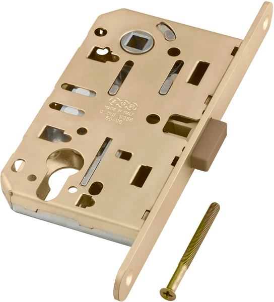 Замок межкомнатный под цилиндр. Тех упаковка. Защелка MEDIANA POLARIS  с магнитным язычком отличается необычайной бесшумностью, при нажатии на дверную ручку происходит  разрыв между двумя магнитами и защелка втягивается в корпус  замка. Модель  разработана инженерами компании AGB и объединяет в себе надежность, качество,  точность механических соединений и инновации. Все замки серии Polaris имеют один размер и взаимозаменяемы между собой.