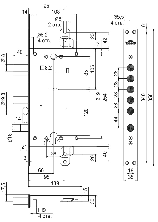 Также в корпусе замка предусмотрены отверстия для установки различных моделей броненакладок в качестве защиты цилиндрового механизма.
