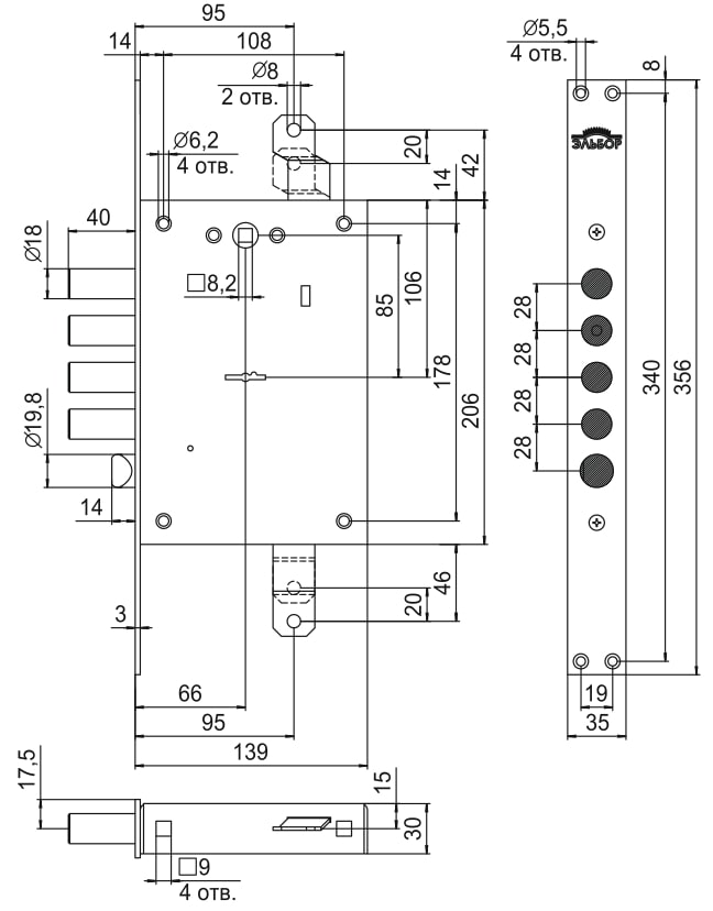 Наличие распорных втулок в корпусе замка увеличивает его жесткость и исключает зажатие сувальдного механизма при установке замка в дверь.