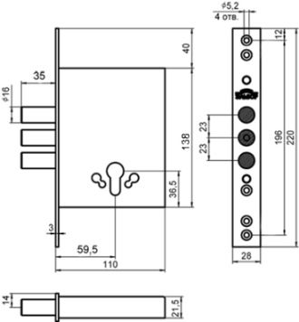 Замок врезной цилиндровый для дверей любого типа.