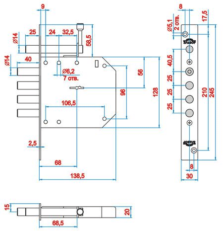 Также в корпусе замка предусмотрены отверстия для установки различных моделей броненакладок в качестве защиты цилиндрового механизма.