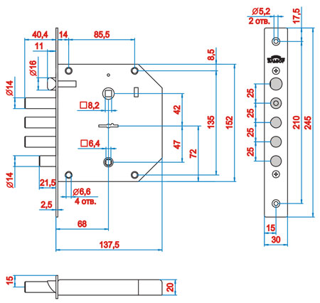 Также в корпусе замка предусмотрены отверстия для установки различных моделей броненакладок в качестве защиты цилиндрового механизма.