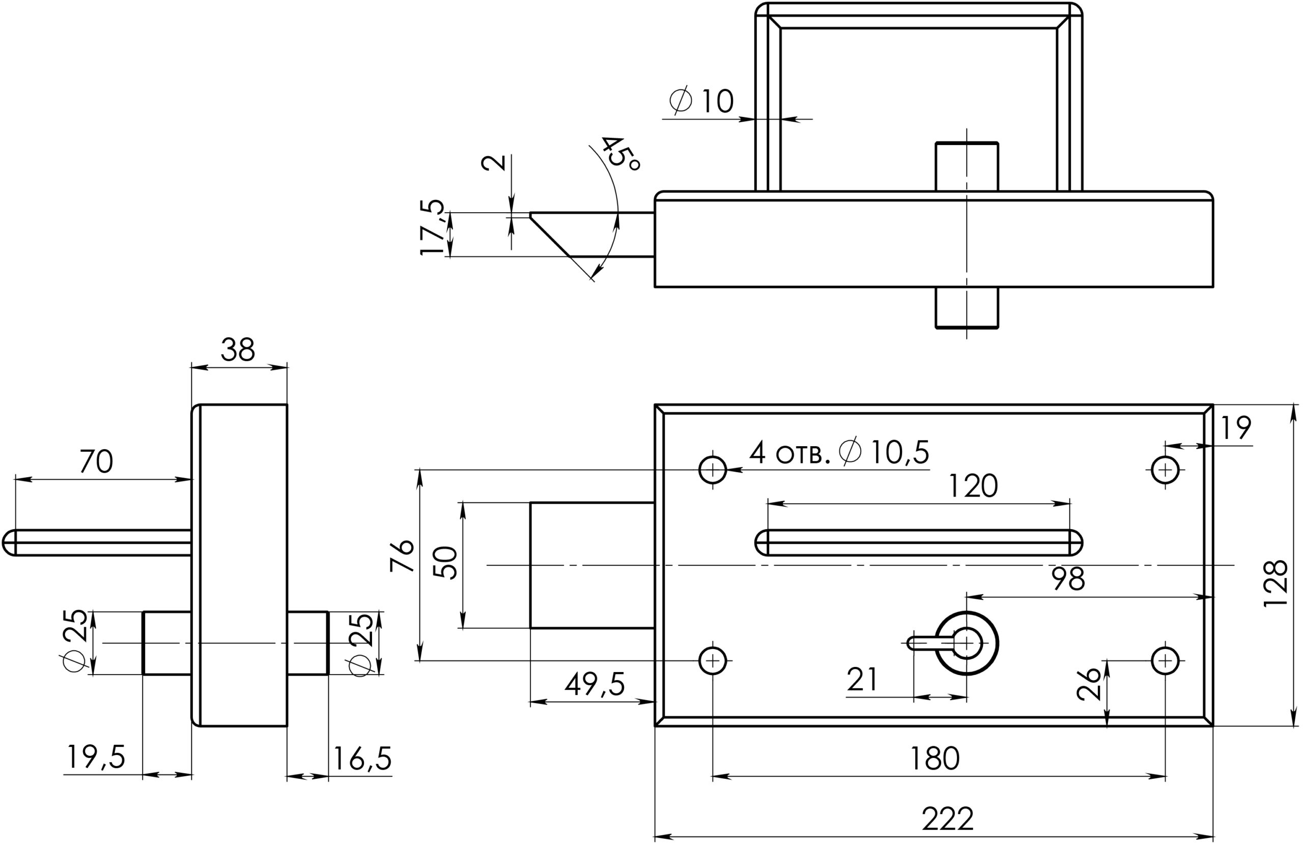 Замок Герион проходной Затвор ЗК-7 (правый) 1 ключ