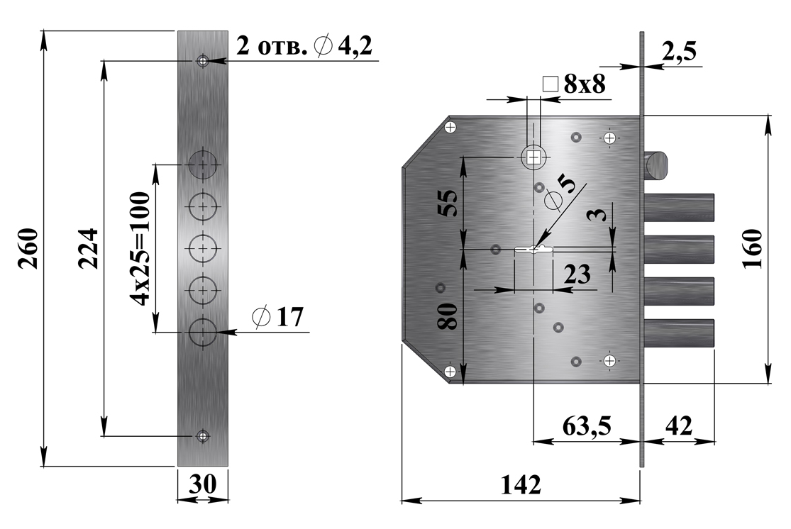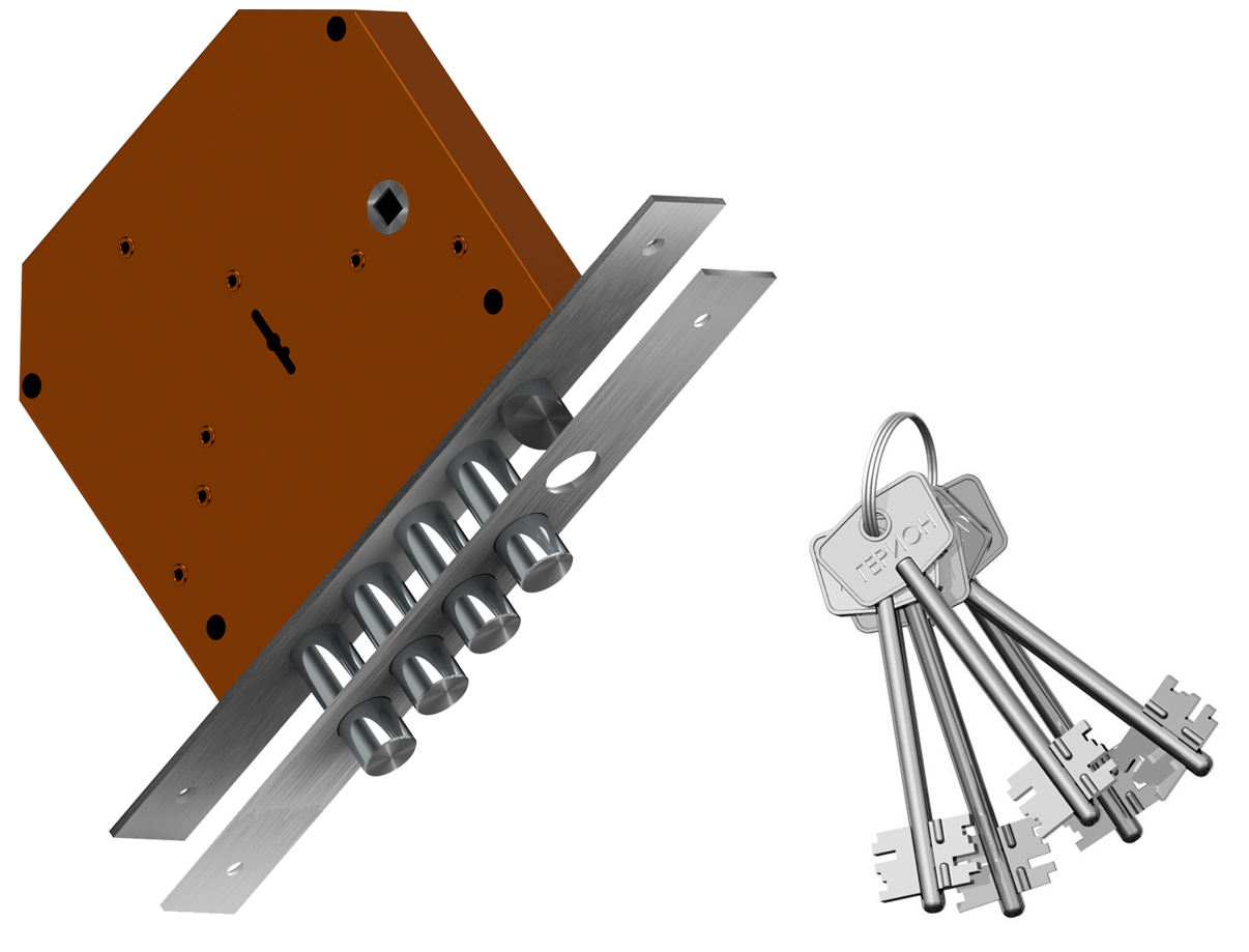 Замок врезной с четырехпалым ригелем, фалевой защелкой и 8и-сувальдным блокирующим механизмом сейфового типа.Замок сертифицирован 3 классом по ГОСТ 5089-2011, сохраняет работоспособность после попадания в скважину посторонних предметов.Запирание двери обеспечивает повышенную сопротивляемость к взлому и высокую степень защиты.Выпускается правого и левого исполнения. Толщина корпуса замка 24мм.Запирание поворотом ключа, обеспечивает ригель, имеющий четыре пальца диаметром 17 мм с вылетом 42 мм. Защелка обеспечивает фиксацию двери и приводится в действие ручкой.В модификации Эталон Р-01 — сертифицирован высшим 4 классом по ГОСТ 5089-2011.