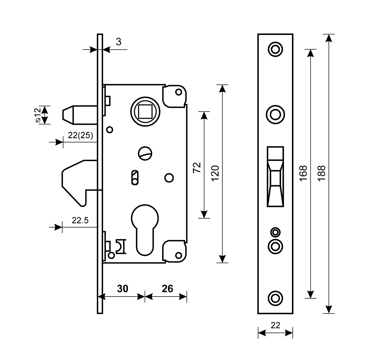 Замок врезной БУЛАТ ЗВ4-1К.30.72.22.04 хром 30 мм под ц/м/ (для откатных ворот) б/руч.
