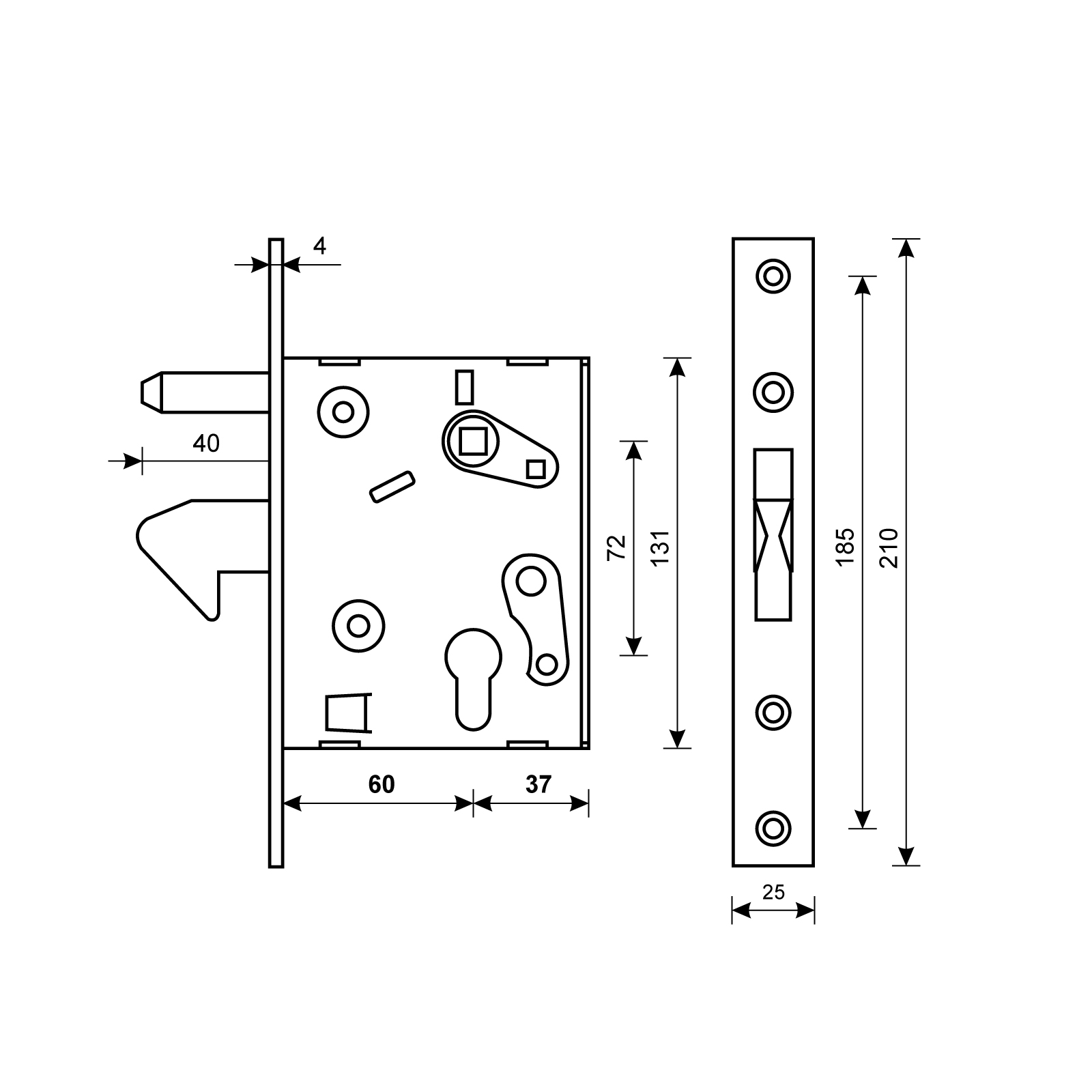 Комплектация: корпус замка, ответная планка, винты крепежа.
