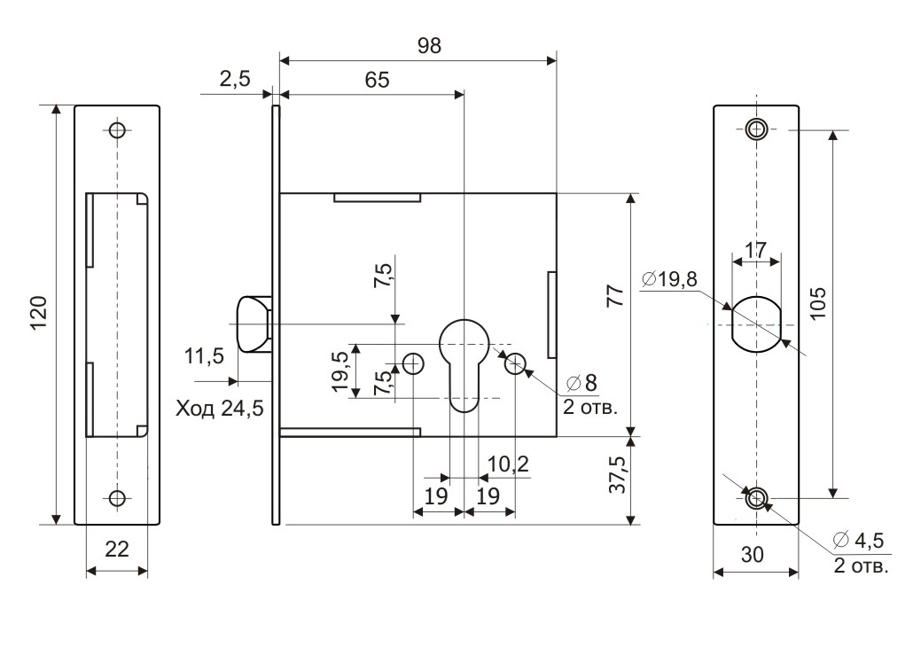 Фиксация защелки в закрытом положении замка. Возможна установка броненакладки.