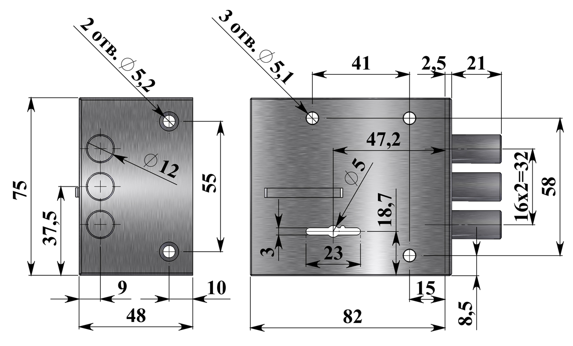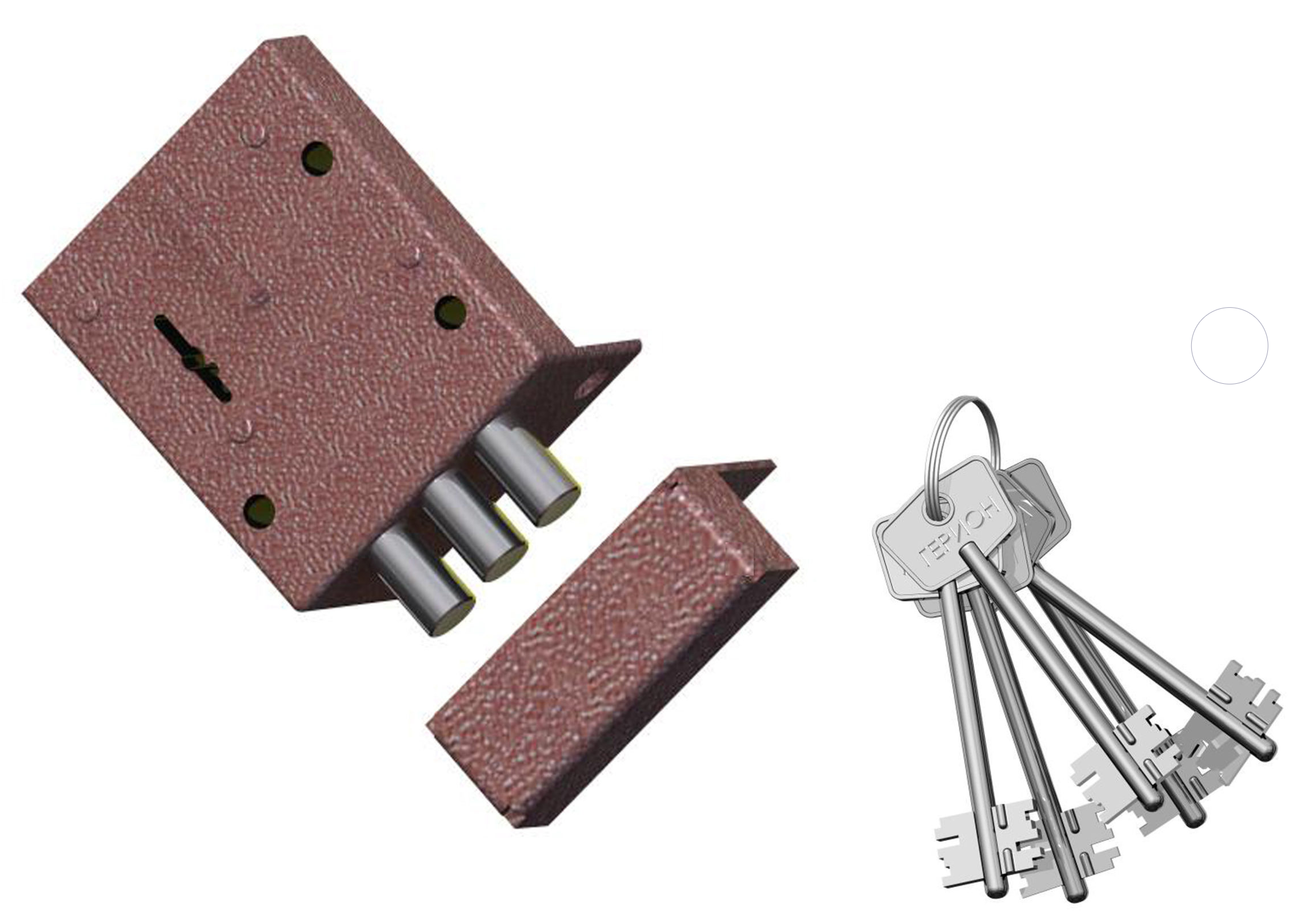 Замок накладной с трехпалым ригелем и шести-сувальдным блокирующим механизмом сейфового типа. Замок сертифицирован 2 классом по ГОСТ 5089-2011, сохраняет работоспособность после попадания в скважину посторонних предметов. Основной ригель, состоящий из трех пальцев диаметром 12 мм, имеет вылет 21 мм и приводится в действие с помощью ключа. Толщина корпуса замка 18 мм.В модификации Гарант НМ-01 — сертифицирован 3 классом по ГОСТ 5089-2011.