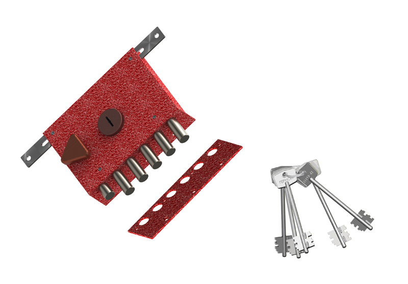 Замок накладной с пятипалым ригелем, двумя дополнительными тягами и внутренней задвижкой. Имеет 8и-сувальдный блокирующий механизм сейфового типа. Замок сертифицирован 3 классом по ГОСТ 5089-2011, сохраняет работоспособность после попадания в скважину посторонних предметов. Запирание двери в трёх направлениях обеспечивает повышенную сопротивляемость к взлому и высокую степень защиты. Толщина корпуса замка 26 мм. Основной засов, состоящий из пяти пальцев диаметром 18 мм, имеет вылет 40 мм и приводится в действие с помощью ключа, дополнительные тяги имеют ход 20 мм и обеспечивают запирание двери вверху и внизу. Внутренняя задвижка работает от треугольной ручки.В модификации Суперконкурент НРЗТ-01 — сертифицирован высшим 4 классом по ГОСТ 5089-2011.