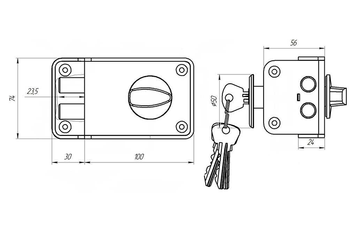 • Замок обладает повышенной секретностью. Оснащен двумя стальными ригелями диаметром 14 мм.