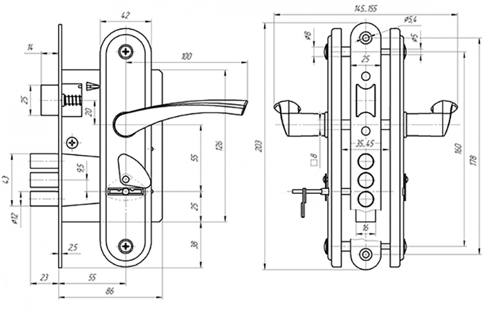Ручки оснащены пружинами, что обеспечивает их четкую работу. Сувальдный механизм гарантирует работоспособность в самых суровых условиях эксплуатации.